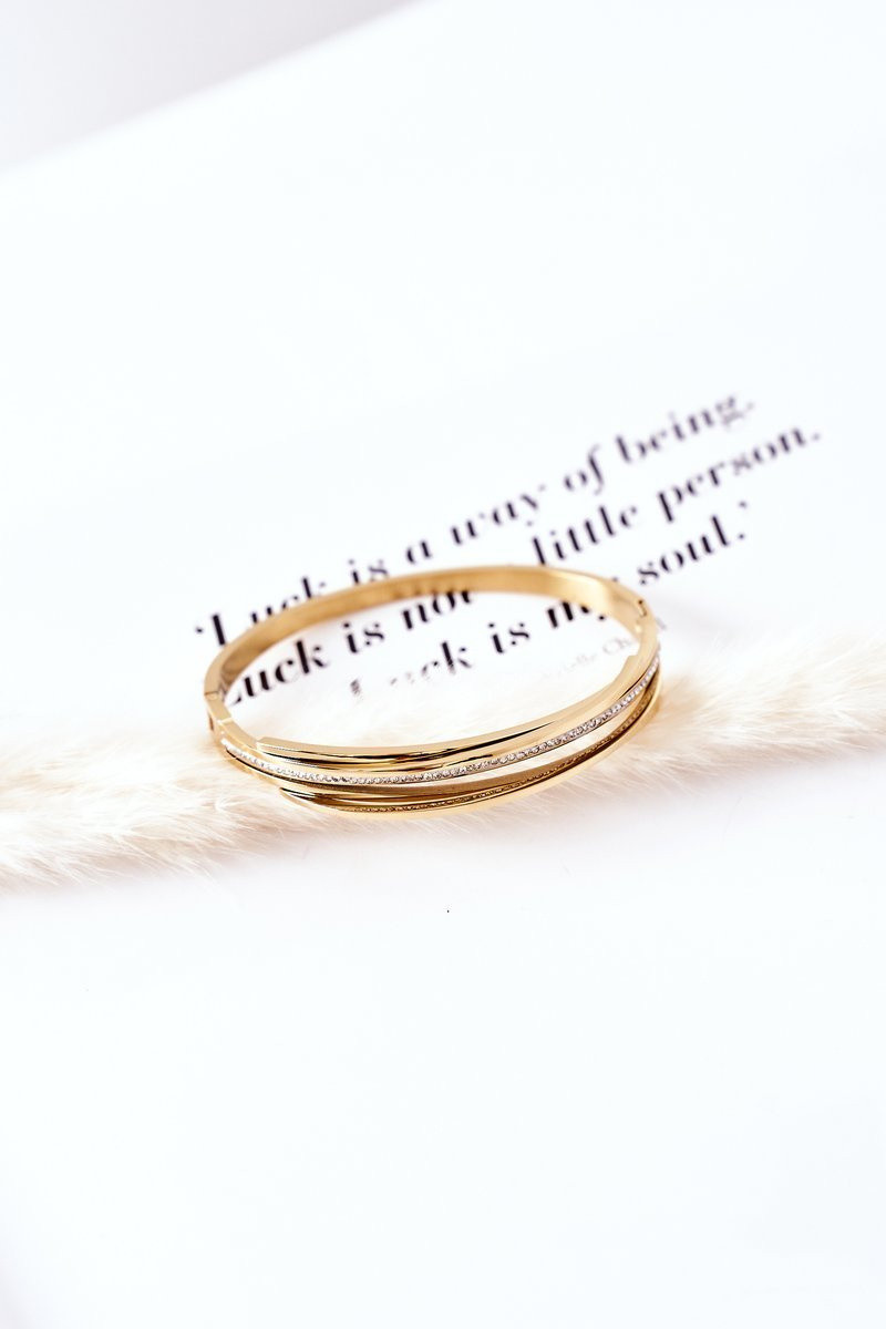 Goldfarbene Stahlarmband mit funkelnden Steinen