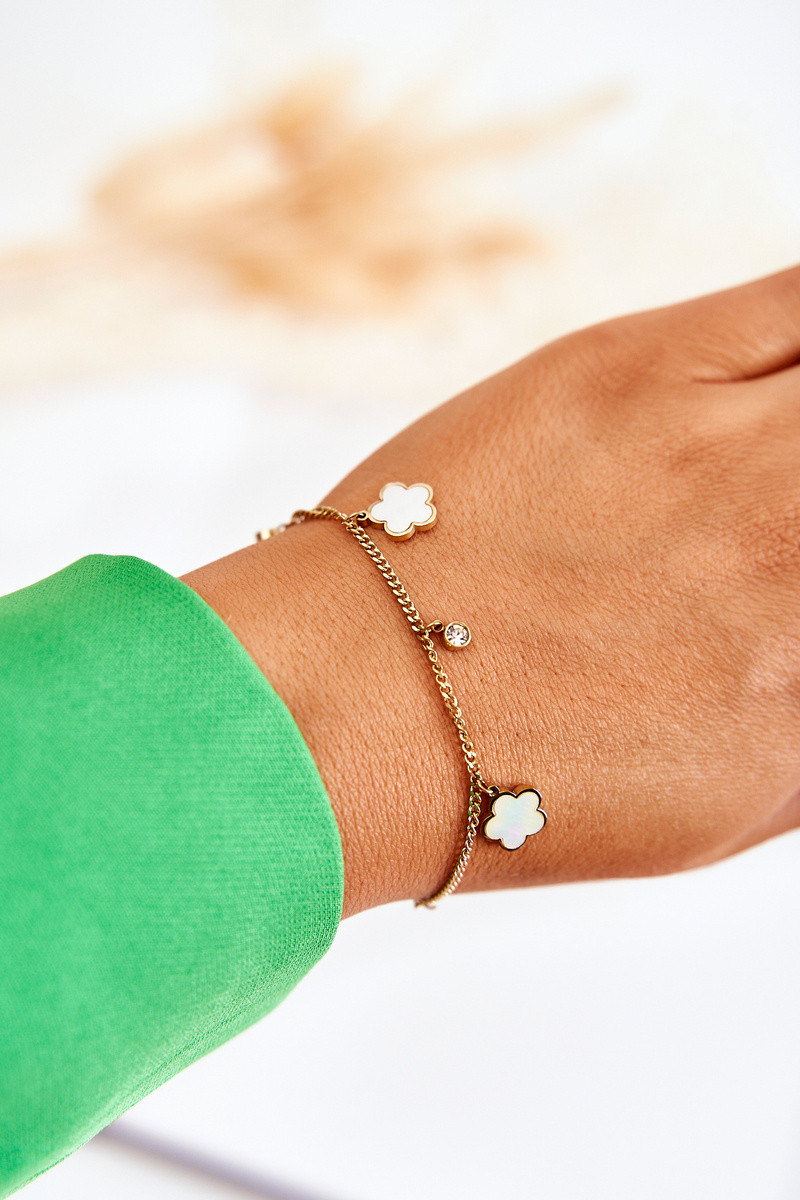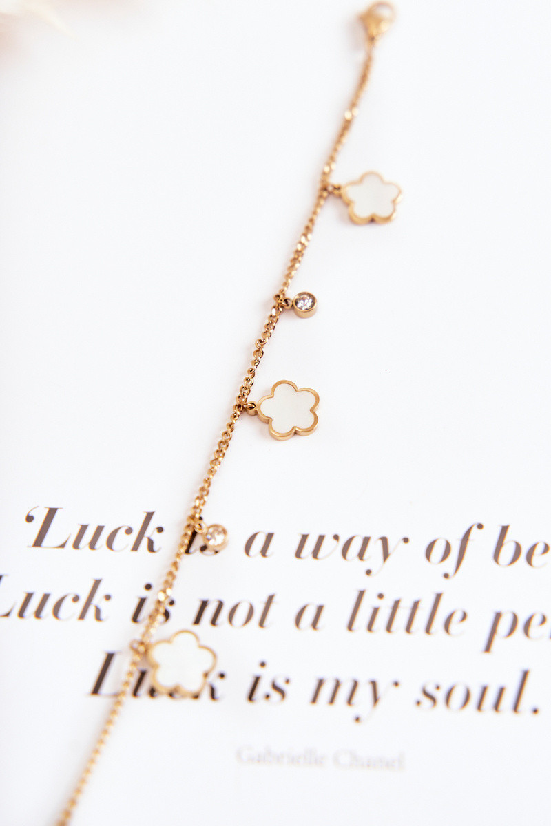 Ein Armband mit einer Kette mit Blumen Gold-INeiß