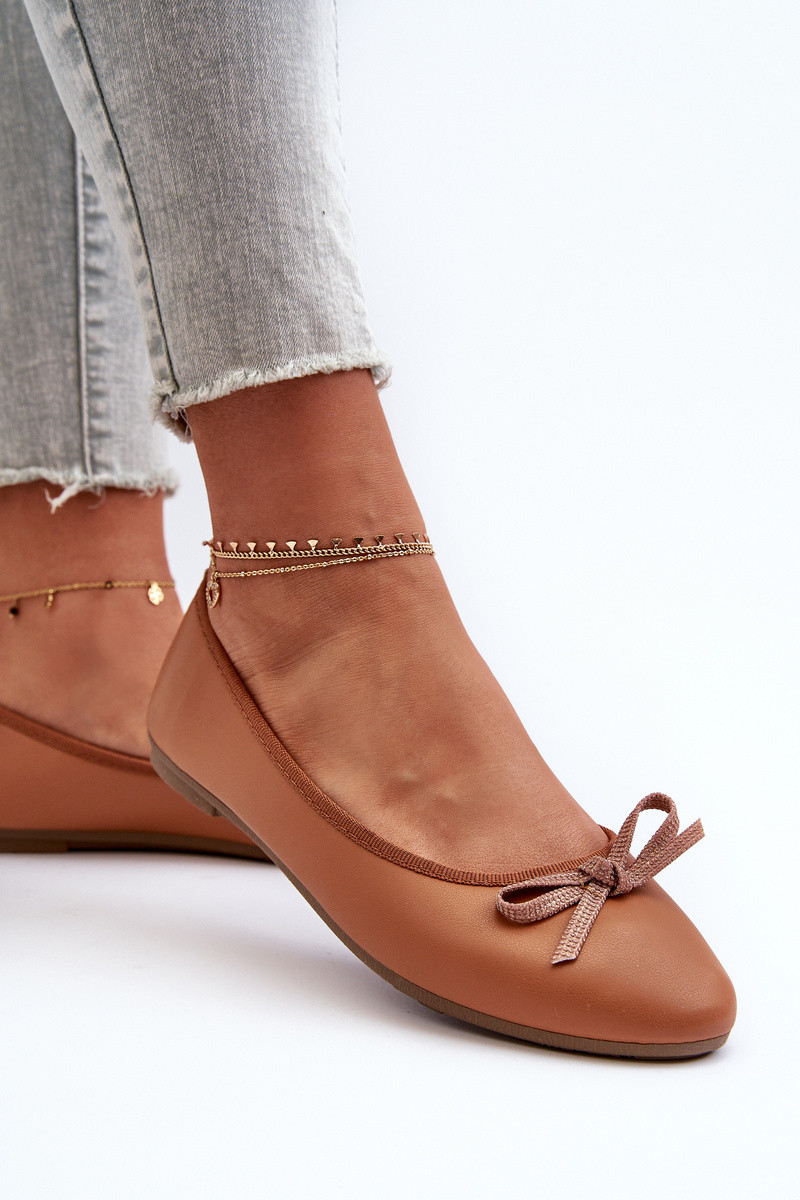Ballerinas aus Kunstleder mit Schleifen in Braun Sandelal