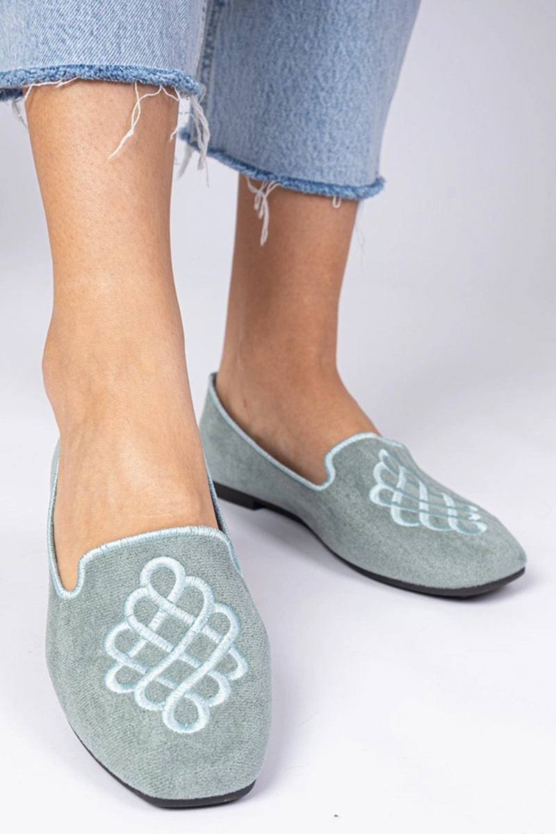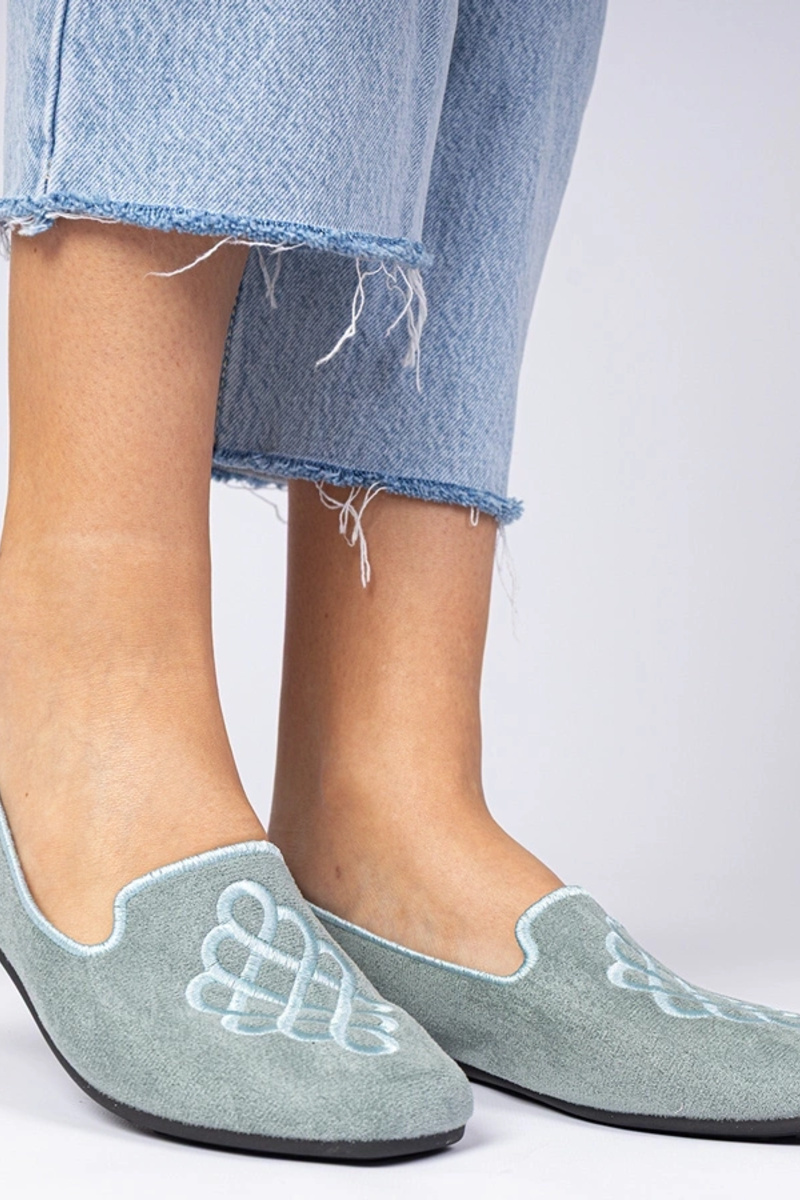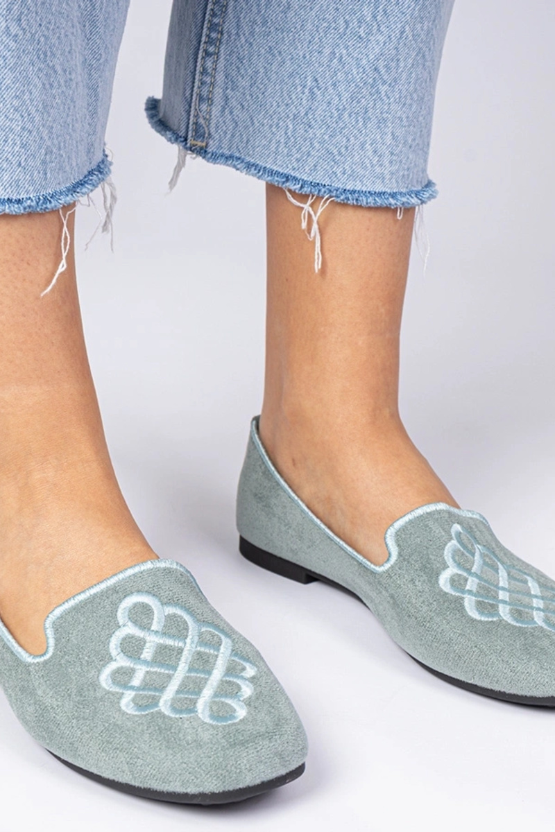 Grüne Damen-Ballerinas aus Kunstwildleder mit Stickerei Ronna