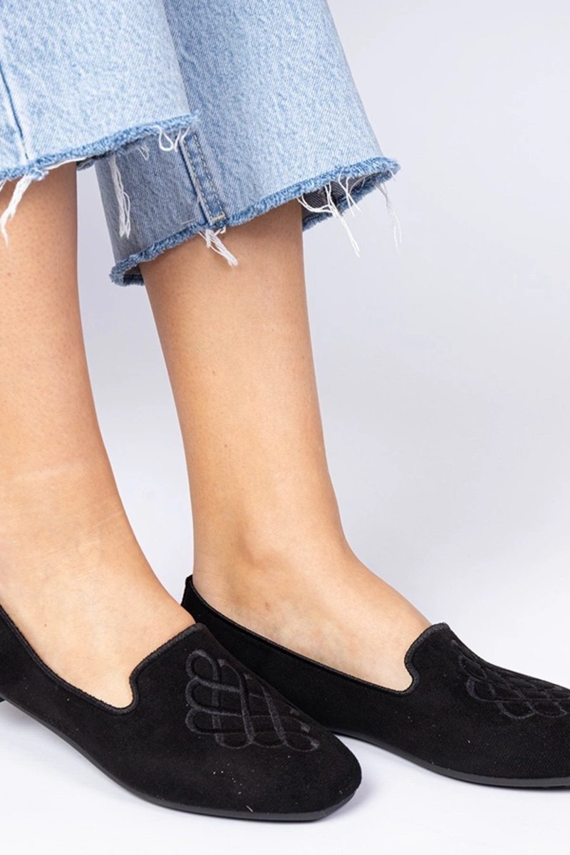 Schwarze Damen-Ballerinas aus Kunstwildleder mit Stickerei Ronna