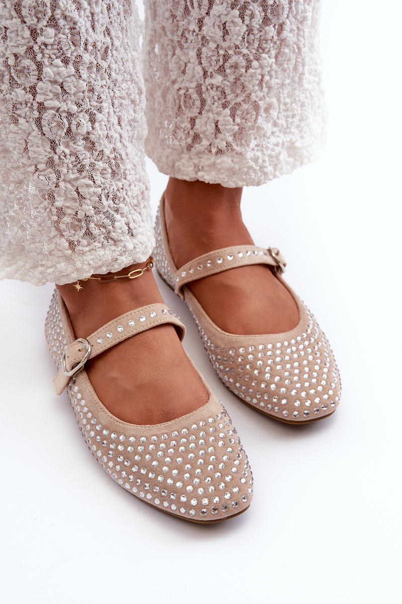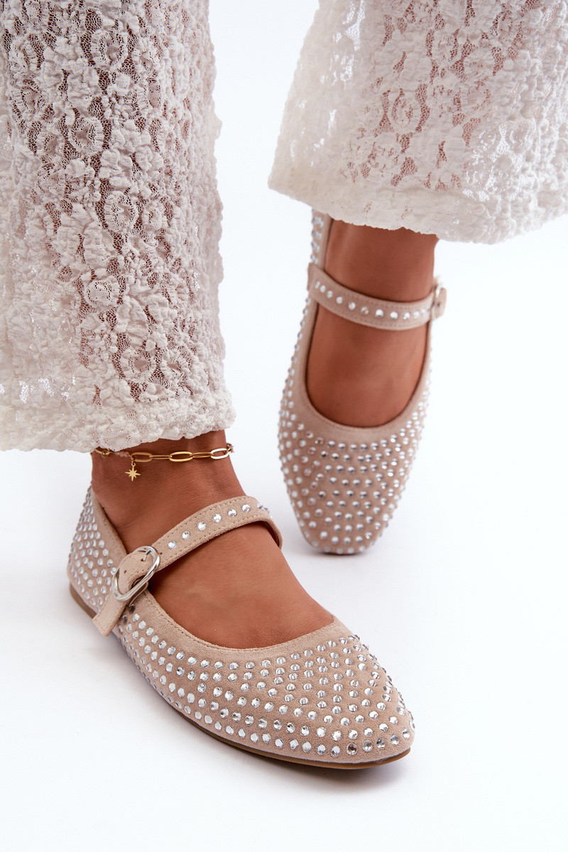 Sandfarbene Kunstwildleder Ballerinas mit Strass, Tinara