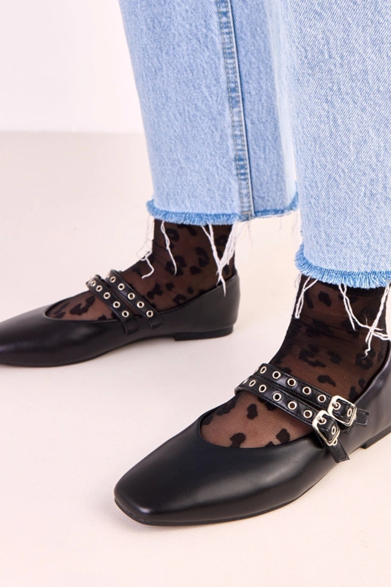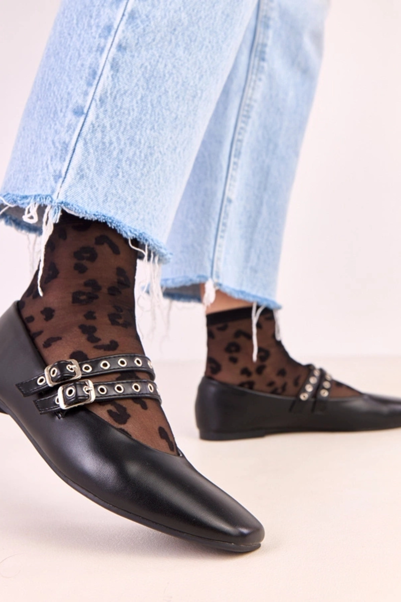 Schwarze Ballerinas Alfira mit quadratischer Spitze und Schnallen