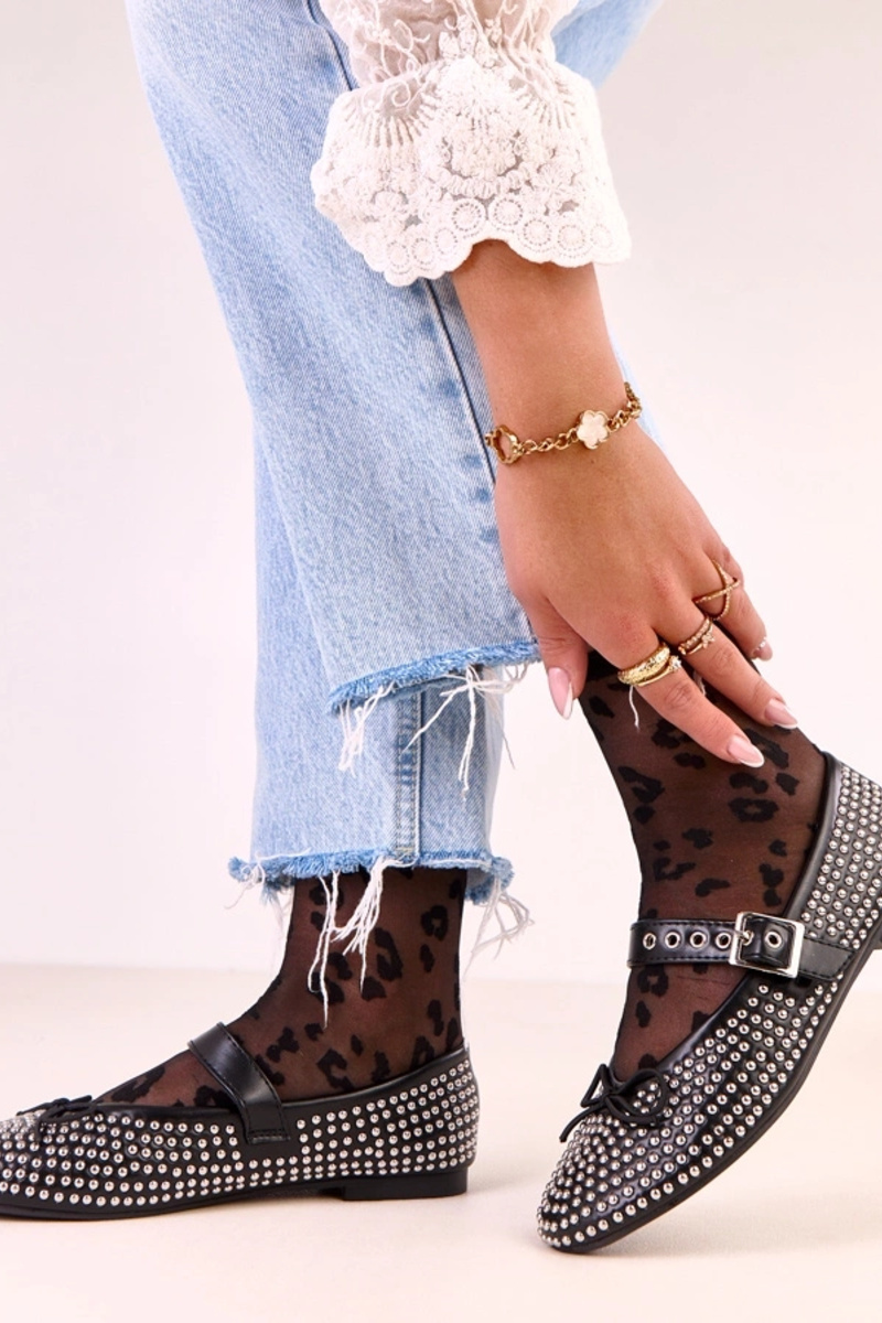 Schwarze Ballerinas Mylie, dekoriert mit Nieten und Schleife