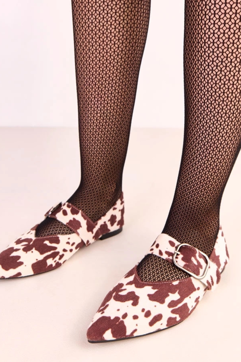 Braune Ballerinas mit Kuhflecken und Schnalle Lena