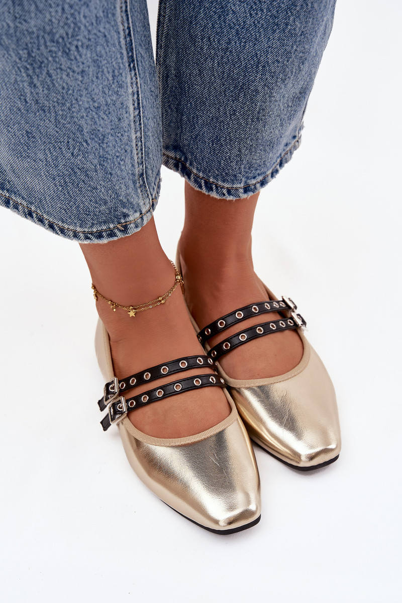 Ballerinas Feminin mit Streifen goldene Farbe Deliora