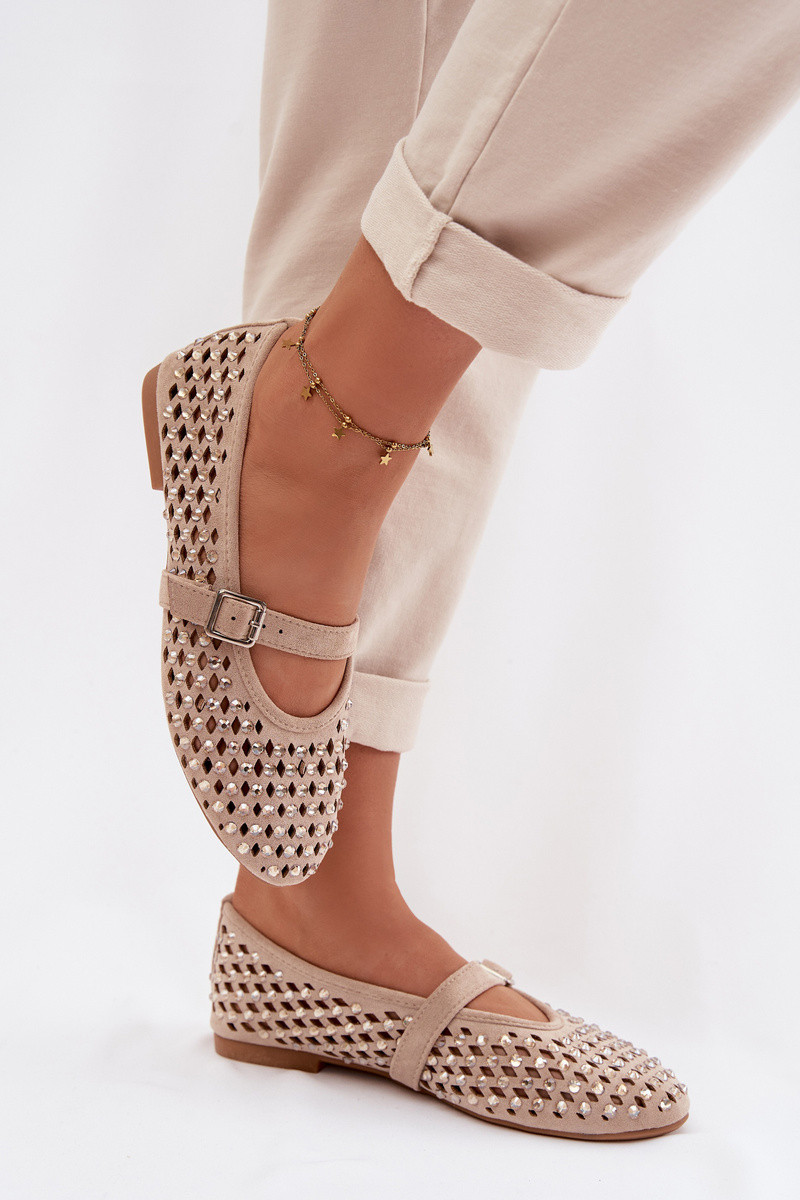 Ballerinas Feminin mit durchbrochenen Elementen mit blitzenden Augen I Streifenem Beige INilvessa