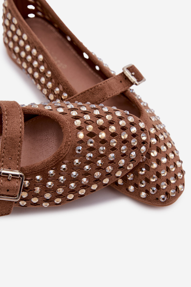 Ballerinas Feminin mit durchbrochenen Elementen mit blitzenden Augen I Streifenem braune Farbe INilvessa