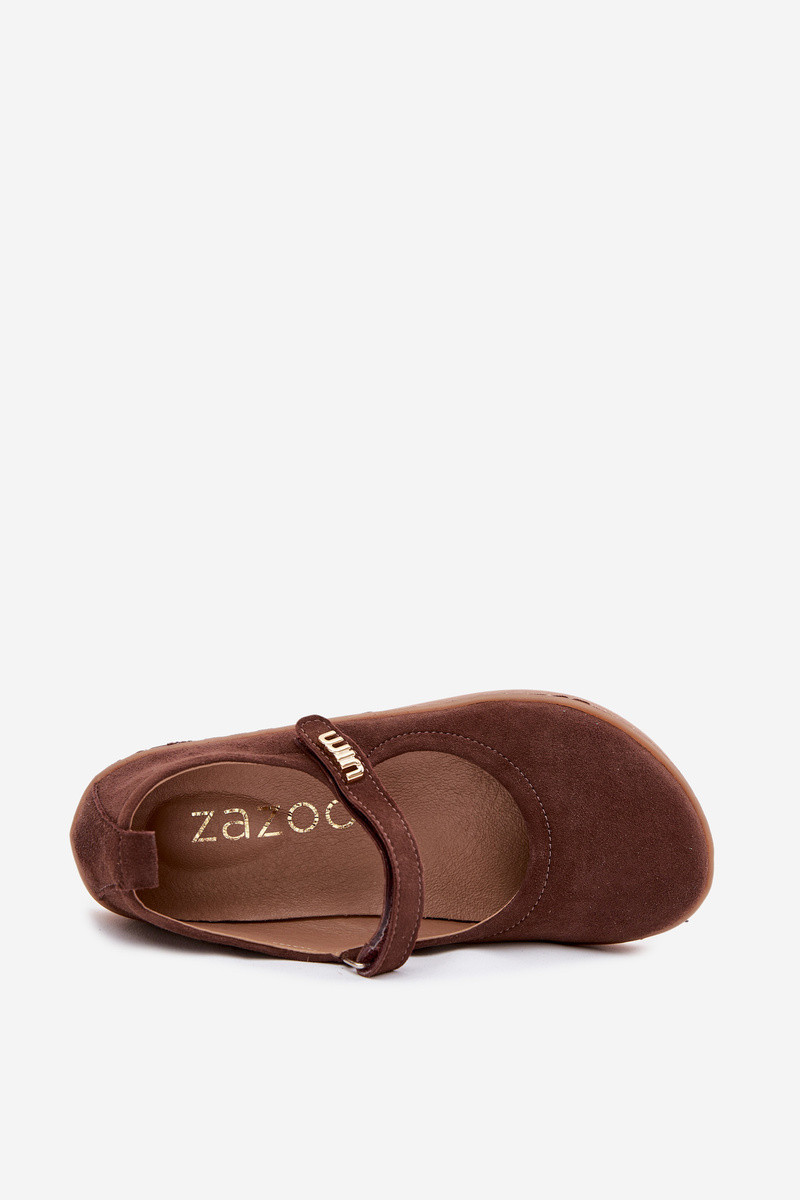 Lederne Wildlederschuhe Barefoot Ballerinas mit Riemchen Zazoo 10206 in Sandfarbe