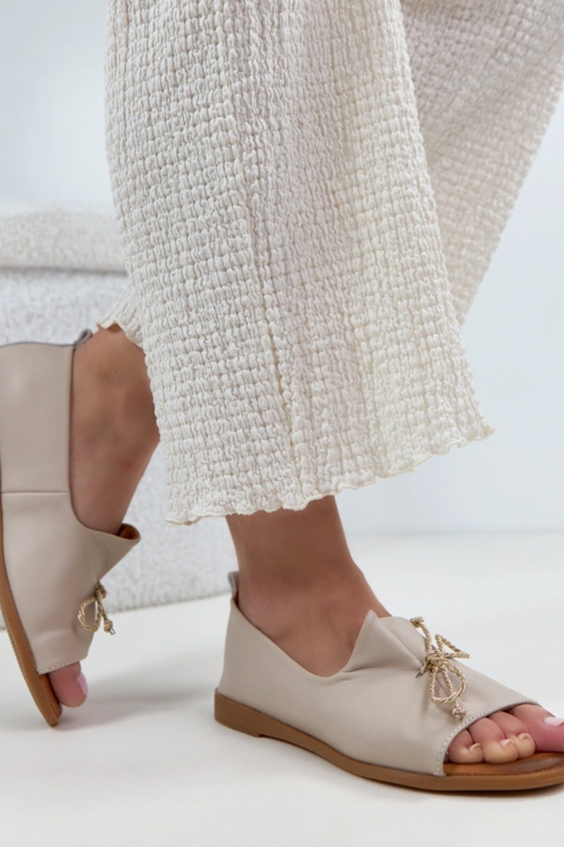 Beige Leder-Ballerinas mit offenem...