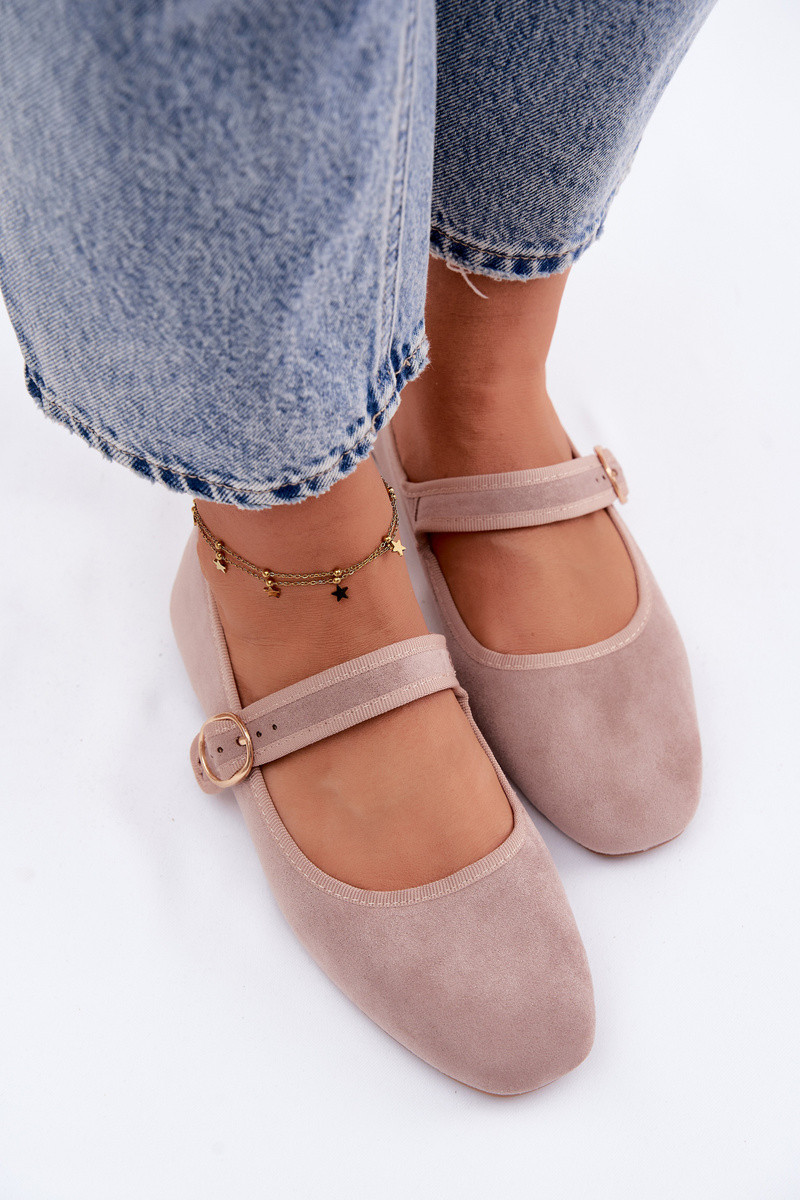 Ballerinas mit Riemchen in goldfarben mit schwarzen Schnallen Kelisa
