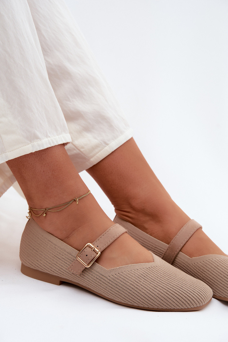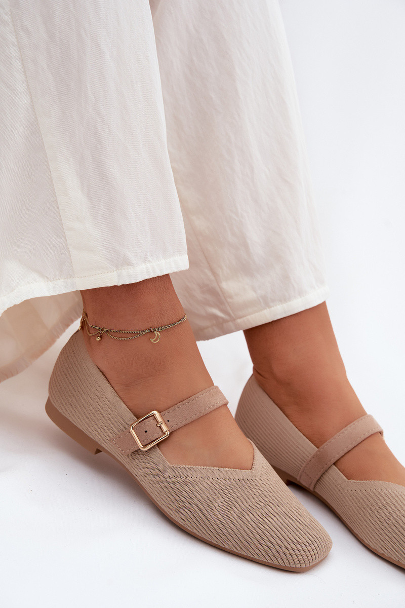Schwarze Ballerinas mit gestreiftem Textilriemen und Schnallen Calvra