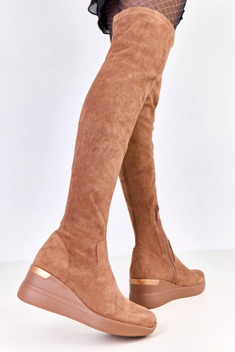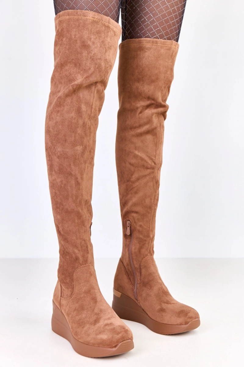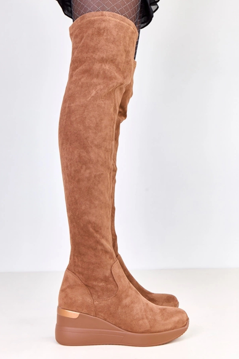 Brązowe kozaki ekozamszowe na koturnie Roland
