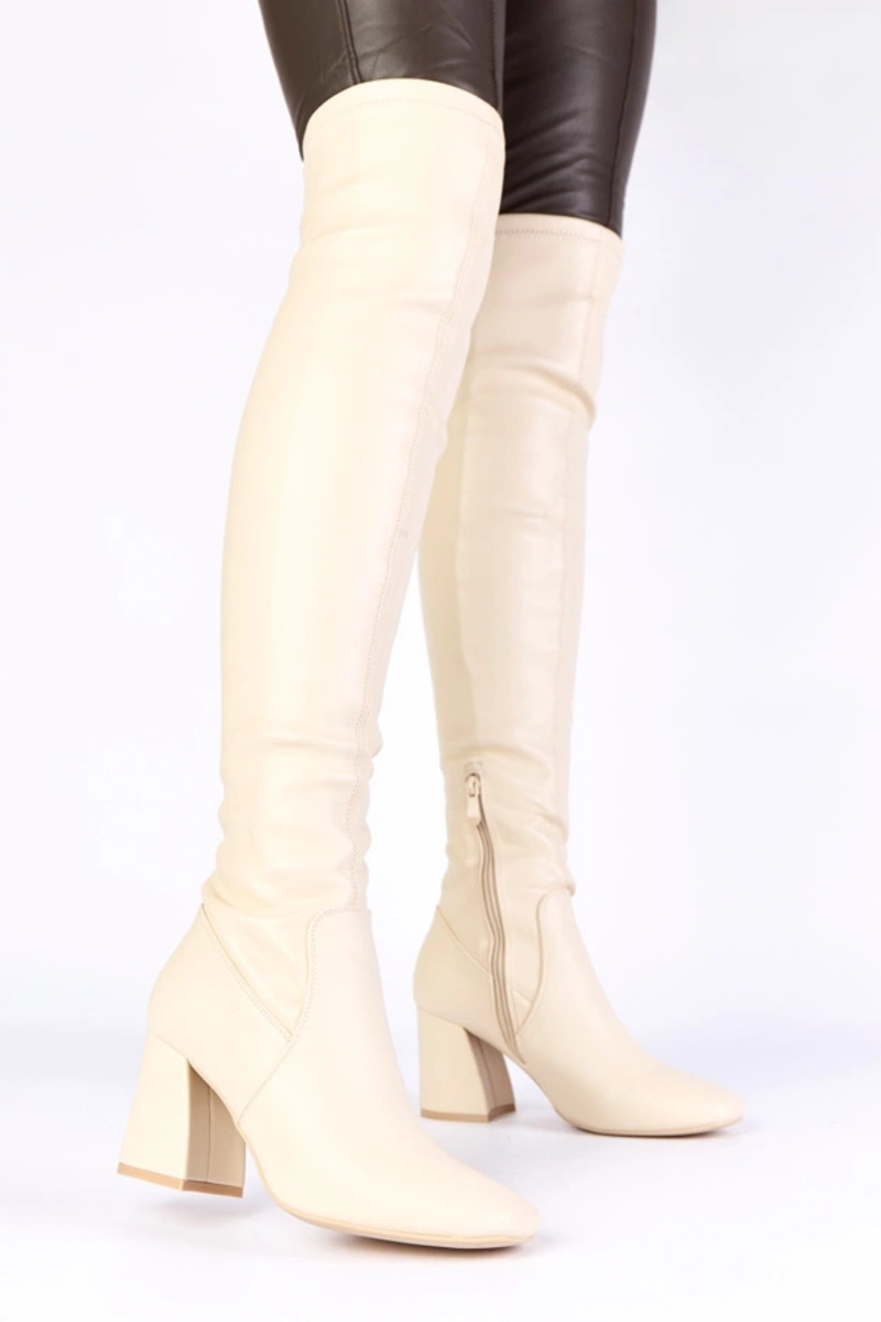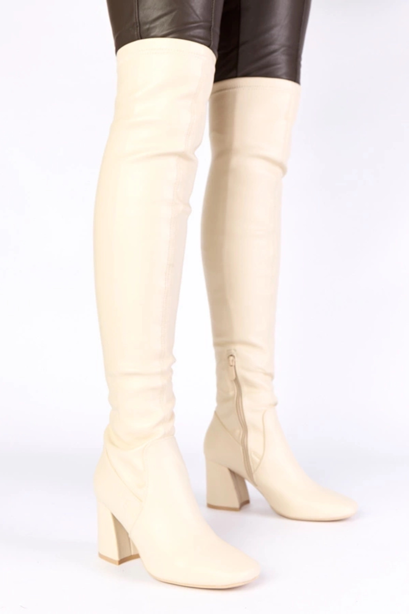 Sandfarbene Overknee-Stiefel über dem Knie auf Absatz Louna
