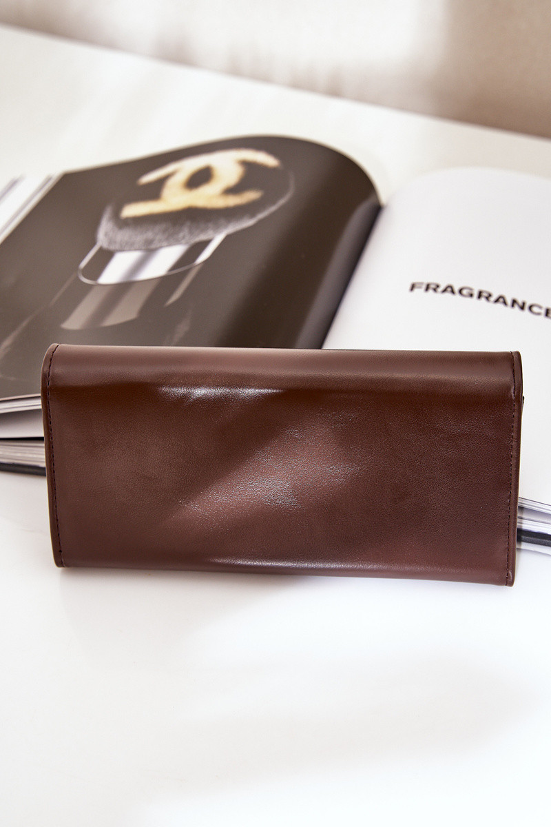 Glatte Damen-Geldbörse aus schokoladenfarbenem Kunstleder Erolia
