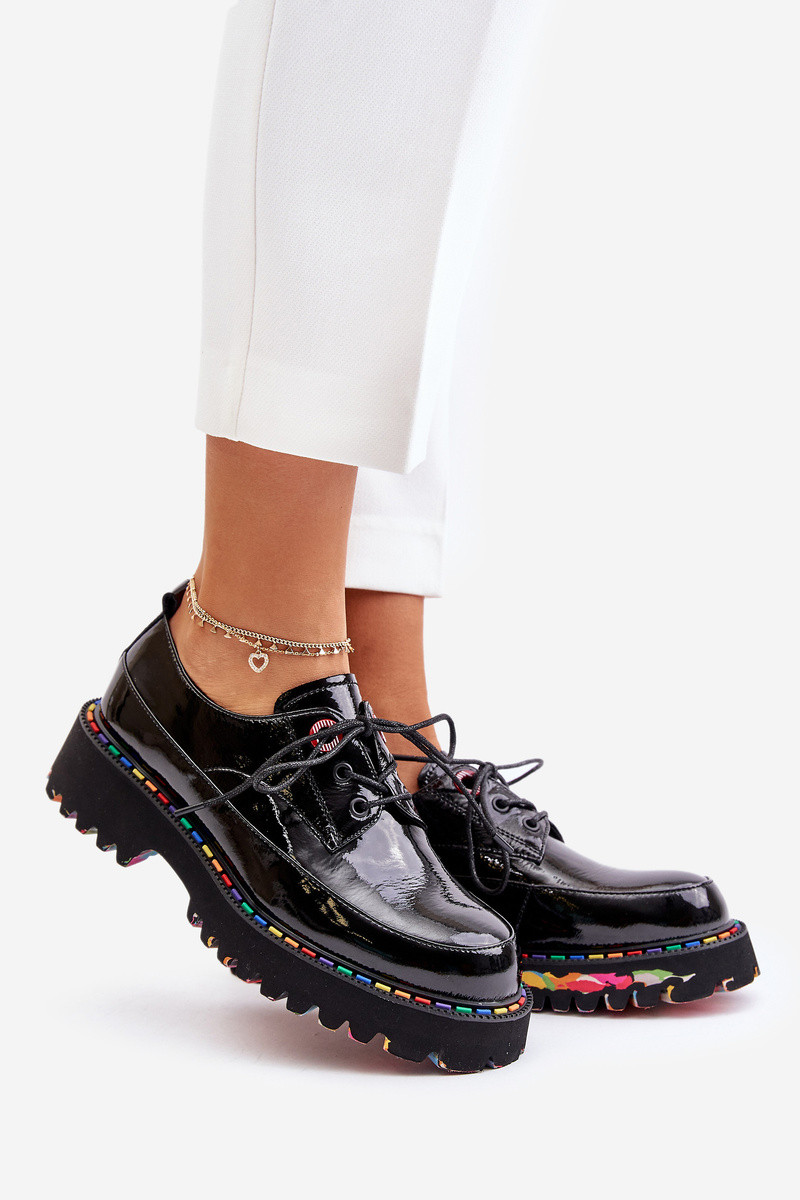 Damen schwarze Lackschuhe mit Schnürsenkeln Artiker 55C0497