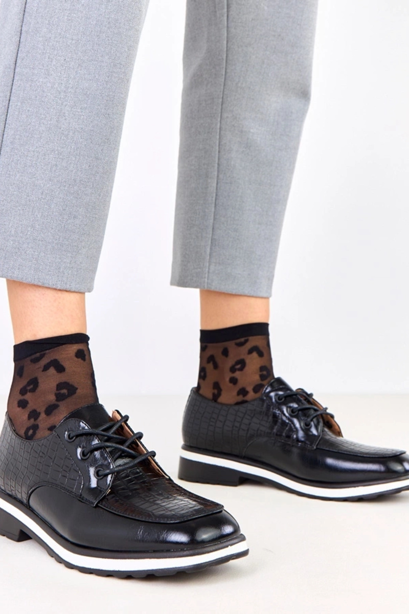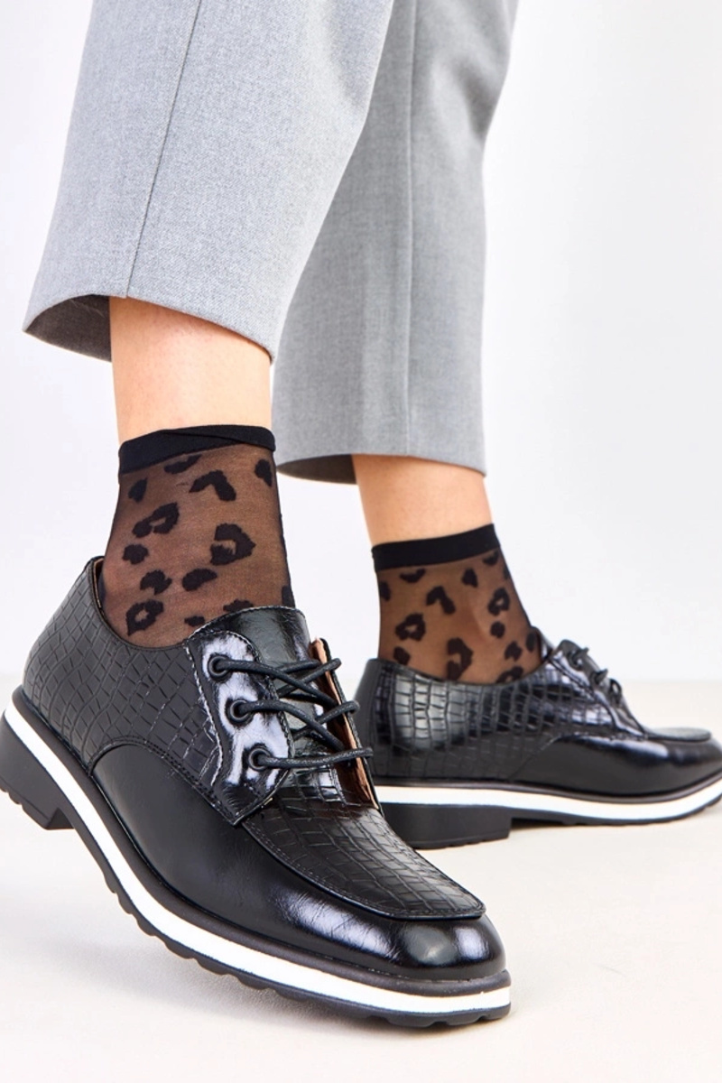 Schwarze Halbschuhe mit Prägung und quadrater Spitze Kerawa