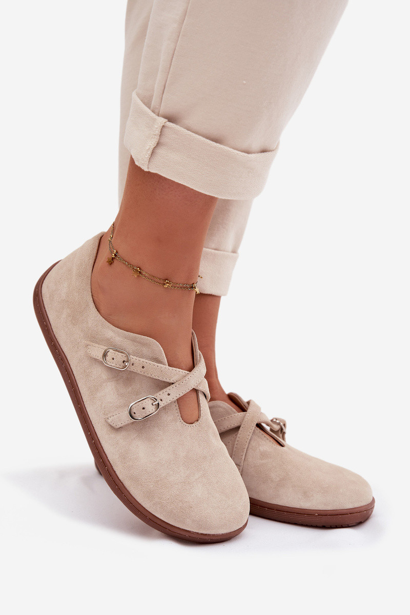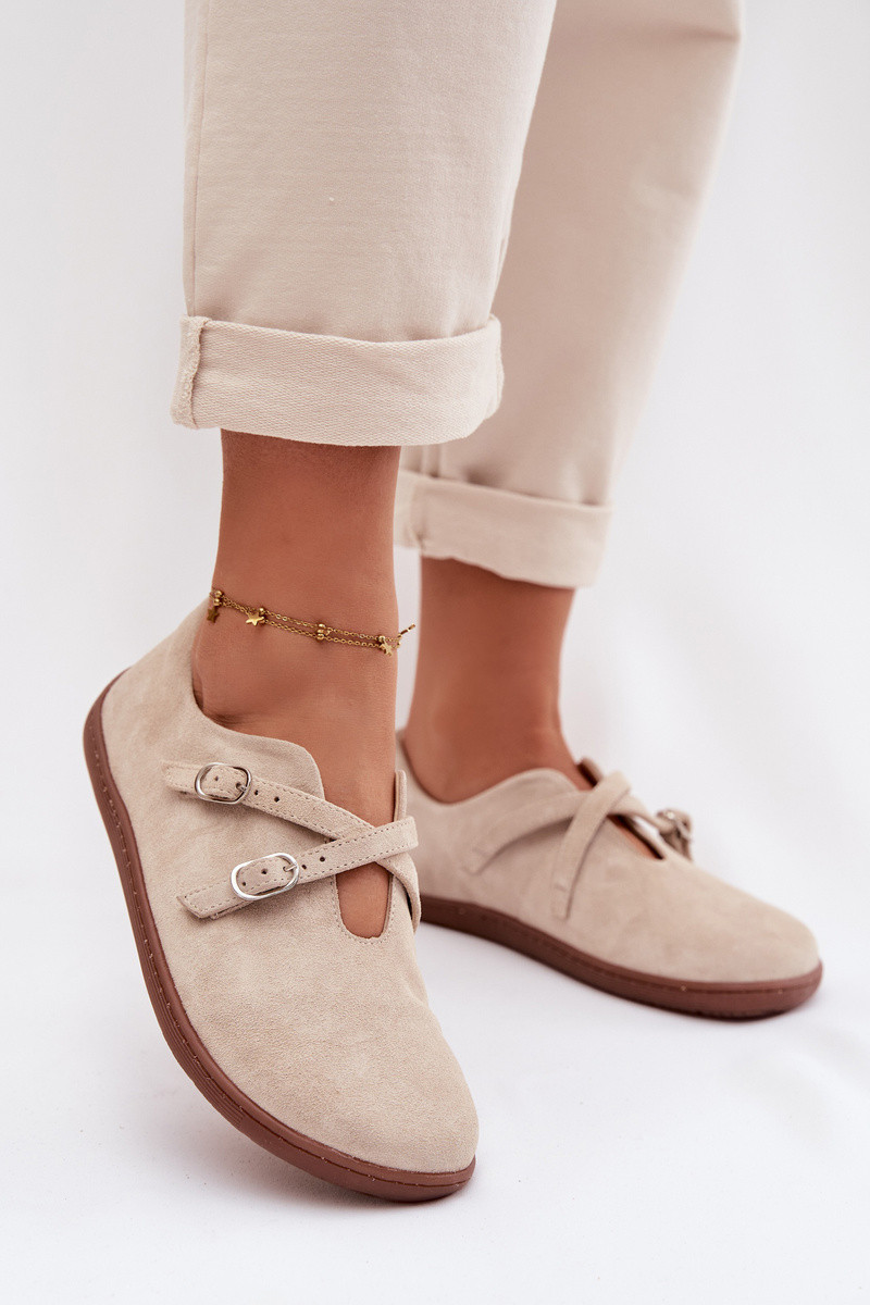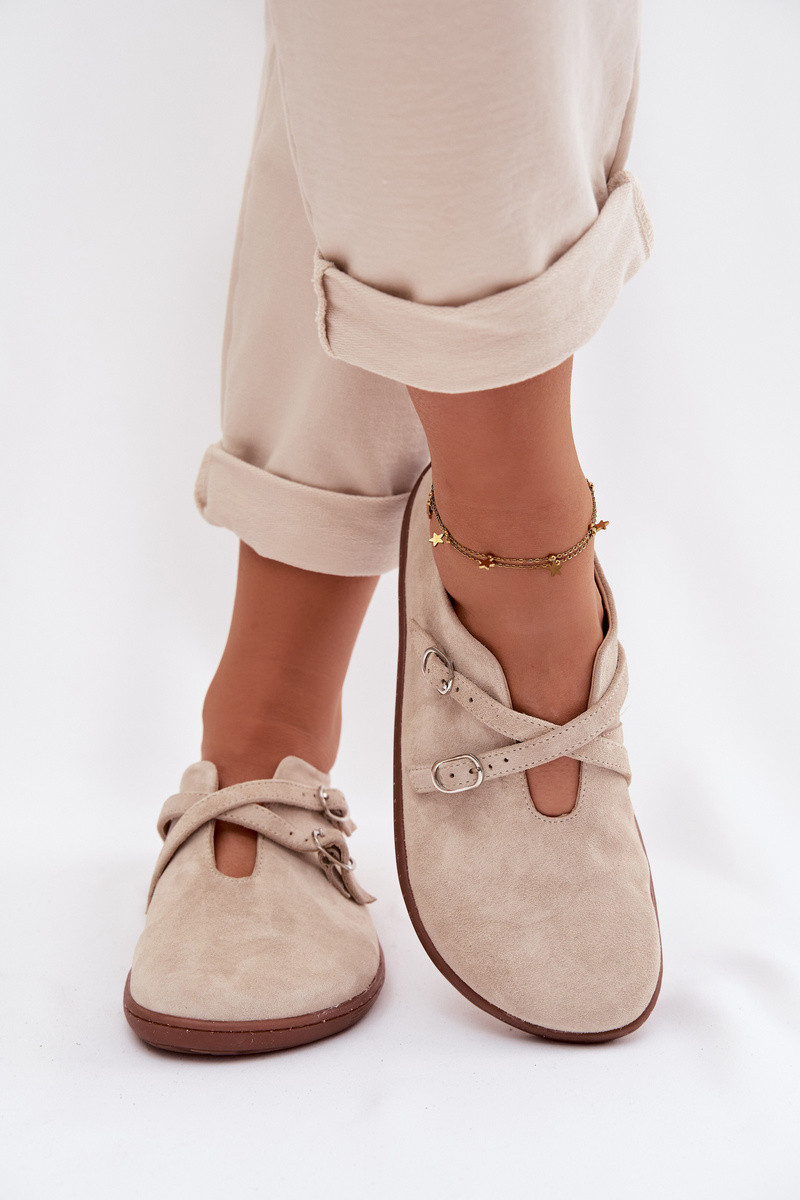 Lederwildlederschuhe für Damen "Barefoot" mit Riemen Zazoo N1271, elfenbeinfarbig