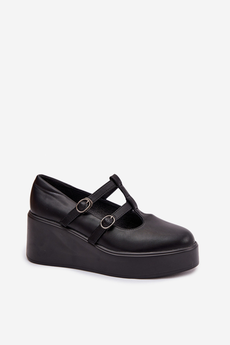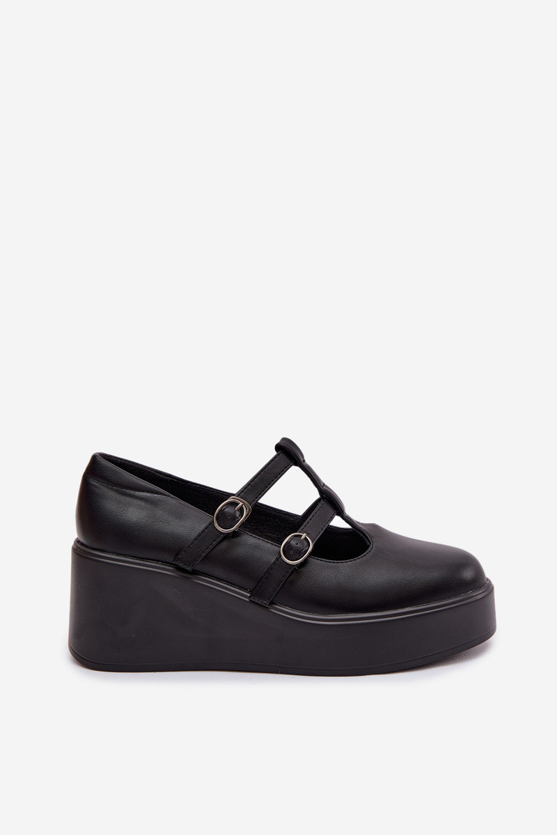 Damen schwarze Plattform-Schuhe mit Riemchen Jesivelle