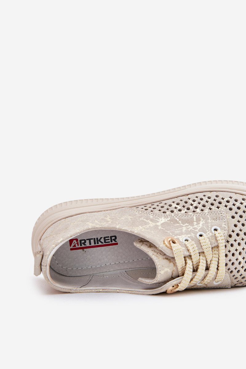 Durchbrochenes INildleder Schuhe Feminin mit einer Plattform Artiker 56C2108 Beige-goldene Farbe