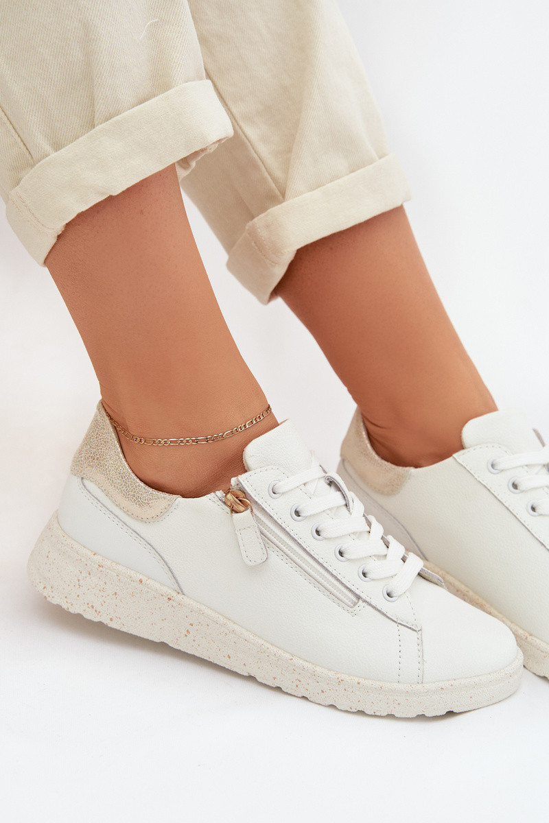 Haut Schuhe Feminin mit Reißverschlüssen INeiß-goldene Farbe Dorothea