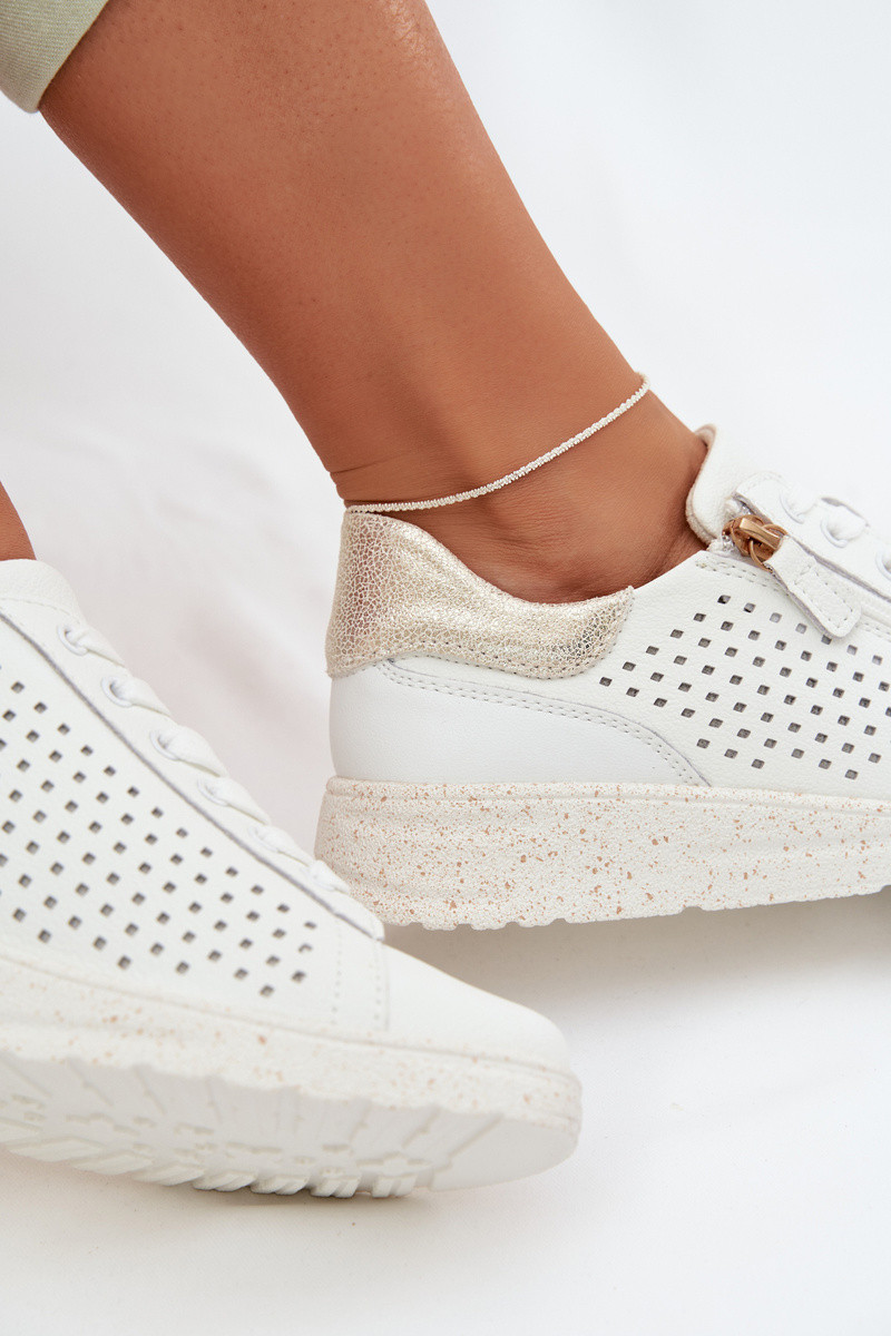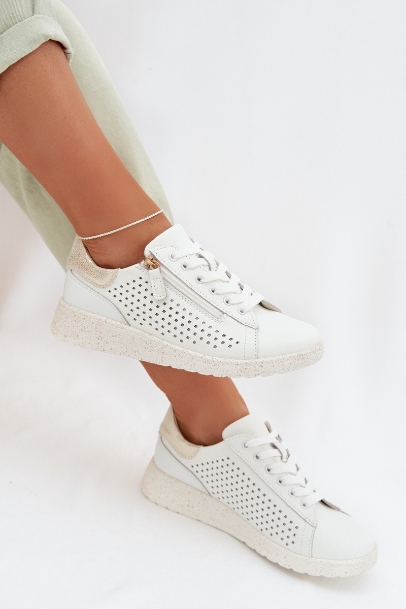 Leder Damen Sneakers mit Reißverschlüssen in weiß-gold Kalorinne