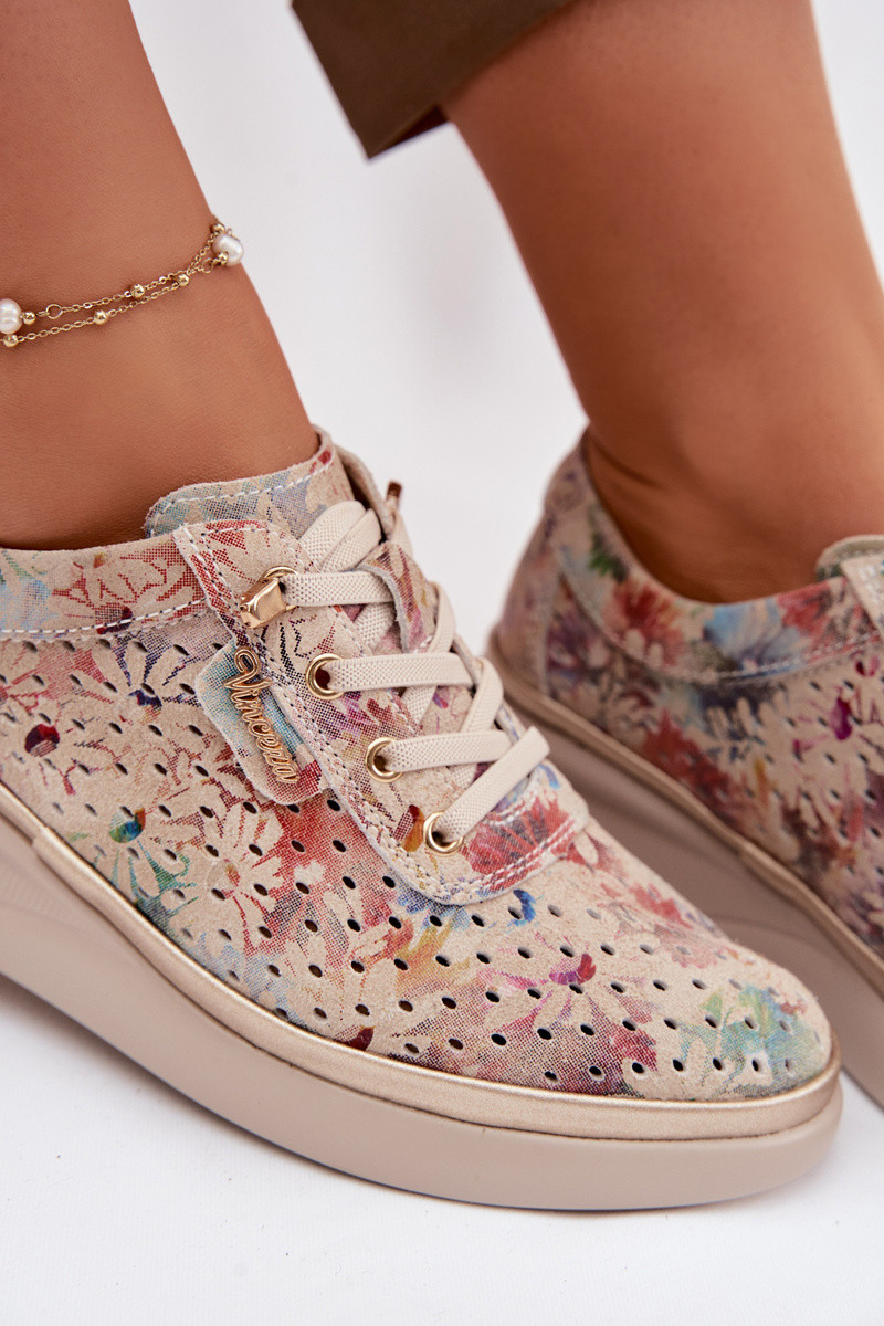 Durchbrochenes INildleder Schuhe Feminin Vinceza 79603 Beige