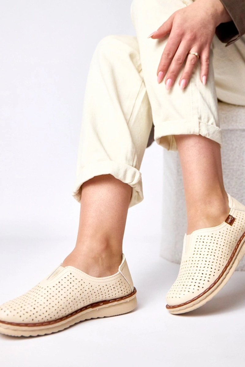 Cremefarbene durchbrochene Halbschuhe...