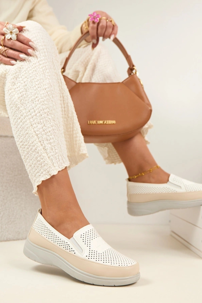 Weiße beige durchbrochene Halbschuhe Aurelle
