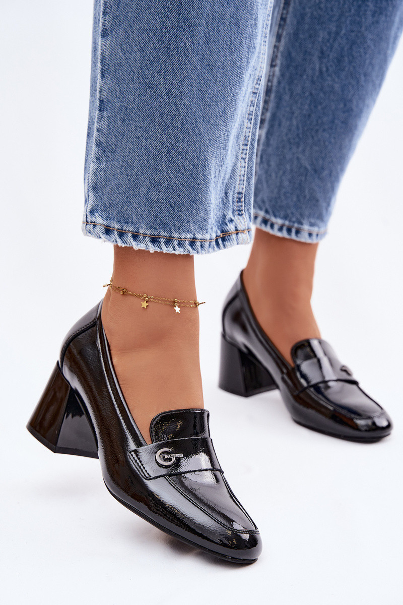 Lackierte Stiefeletten aus echtem Leder Feminin mit Absätzen Vinceza 18119 schZuarze Farbe