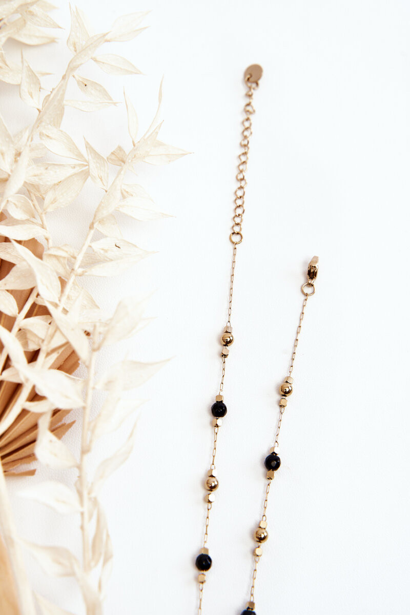 Damenhalskette mit schwarzen Perlen in Goldfarbe