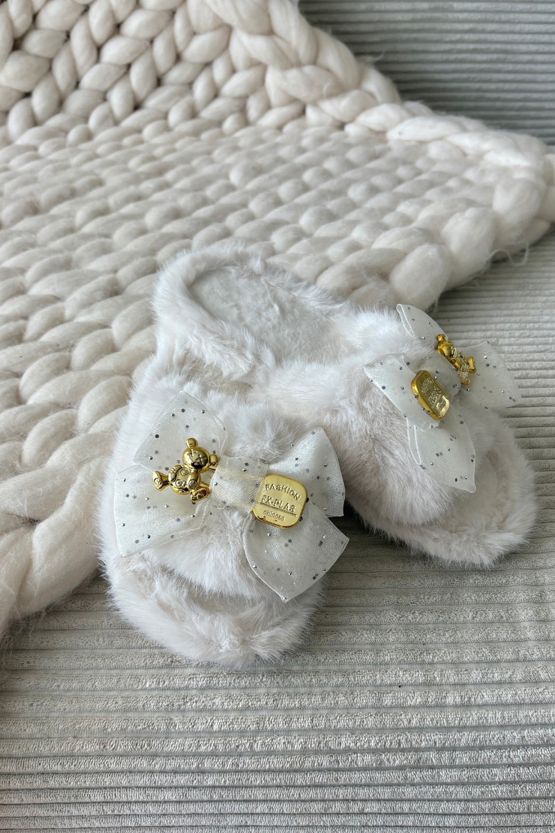 mit Pelzmantel Hausschuhe Feminin mit Bändern I Złotą Ozdobą elfenbeinfarbe Nolara