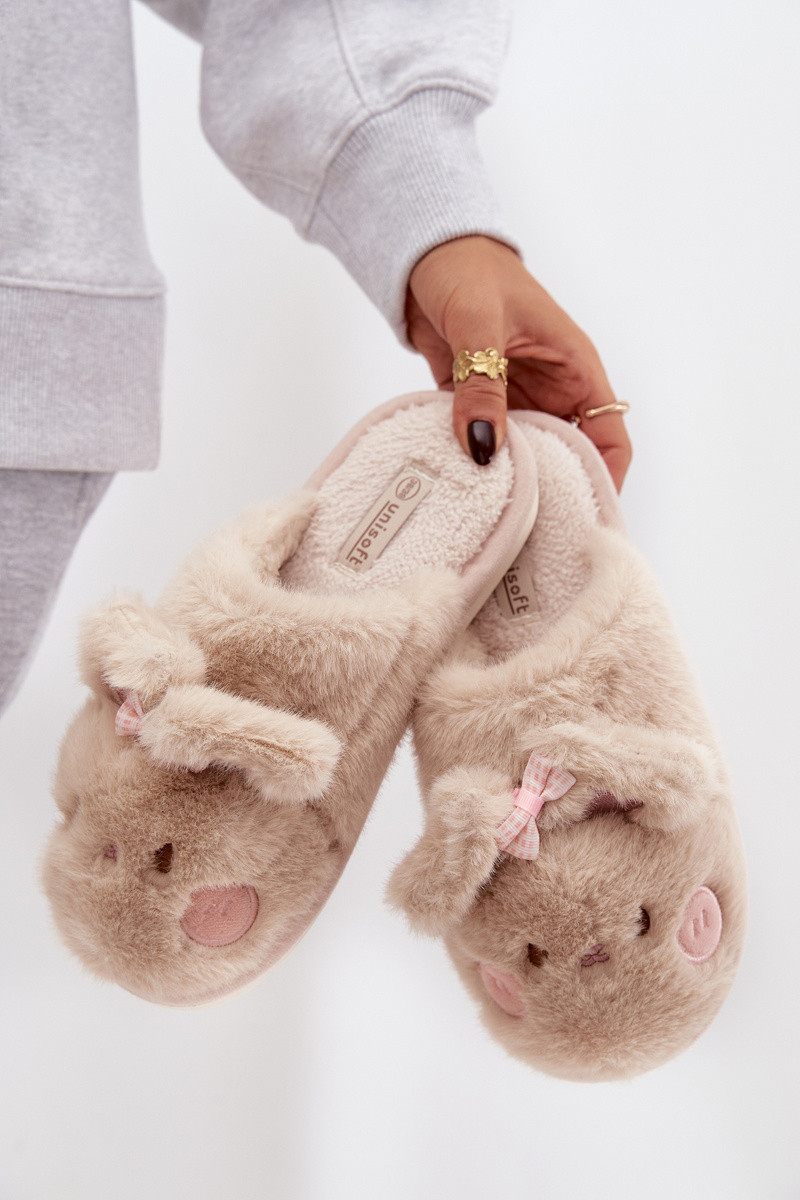 mit Pelzmantel Hausschuhe Feminin mit Ohren I Kokardką Beige Corayne