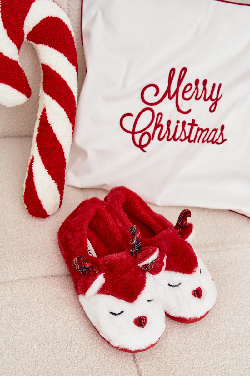 Hausschuhe INeihnachten Feminin Mit einem Thema Rentier mit Pelzmantel rote Farbe Orsella