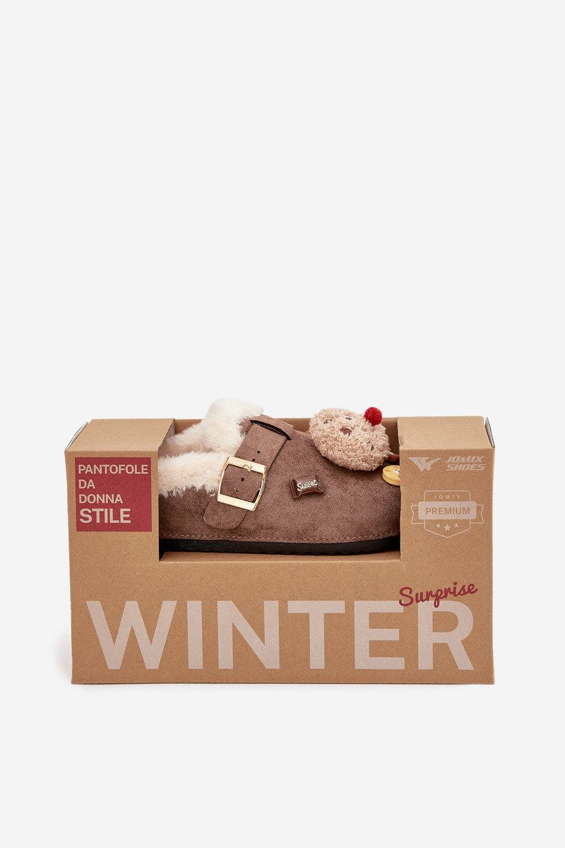 Damenhausschuhe mit schönen Details und Schnallen, gefüttert mit Fell, braun „Thalora"