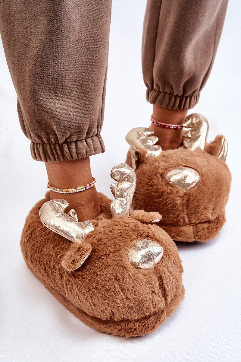 Feminin mit Pelzmantel Ein überzeugendes Stilvollll Hausschuhe Rentier braune Farbe Comet