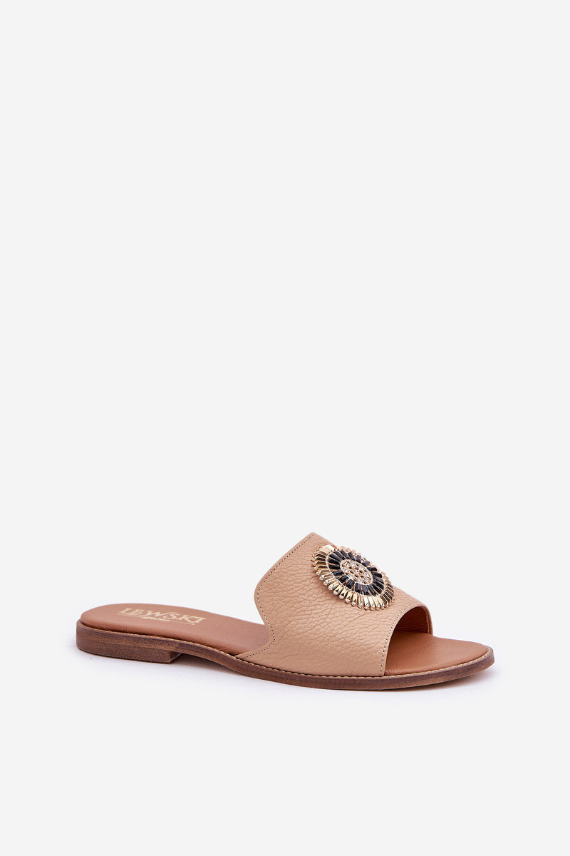 Lederpantoletten mit Ornamenten und breiten Absätzen LeĮskis 3047/O sandfarben