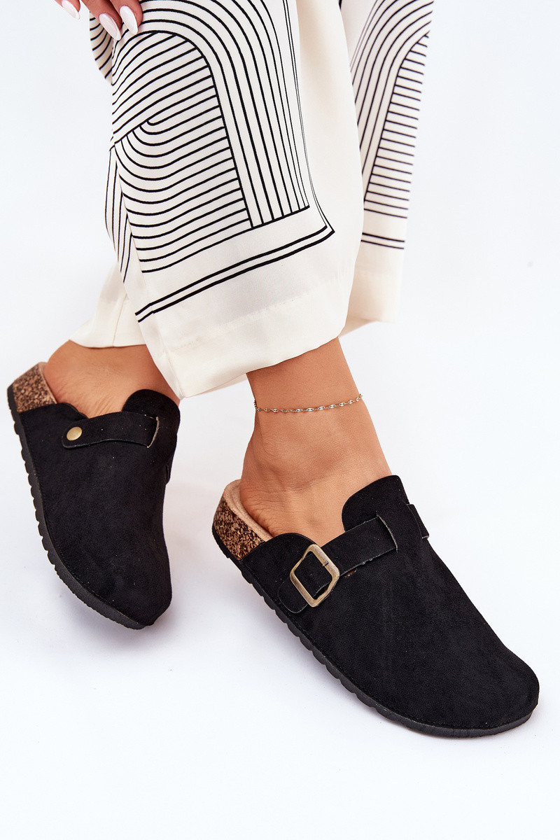Hausschuhe Verstopfungen Feminin i mit einer Plattform mit Schnallen schZuarze Farbe Selio