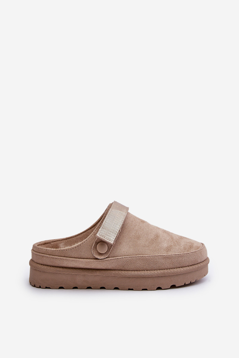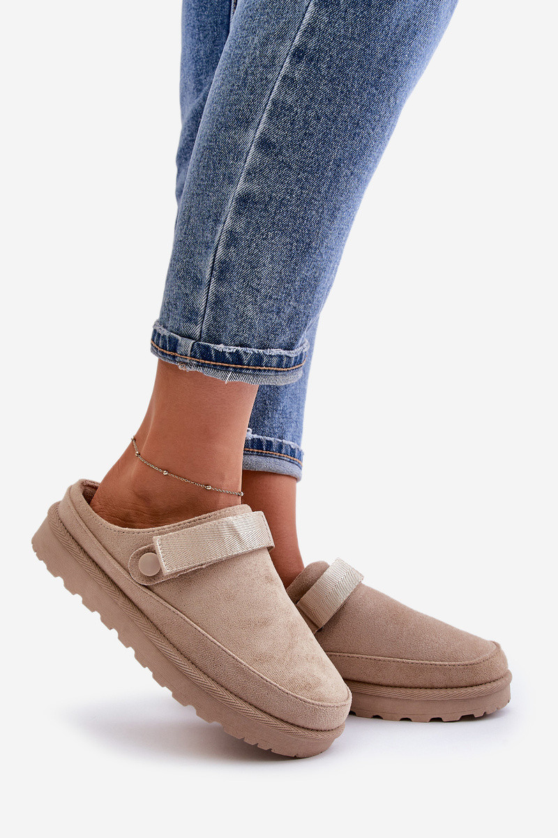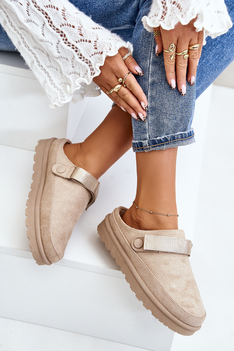 Damen warme Hausschuhe mit Fell innen und Plattform in Sandfarbe Azida