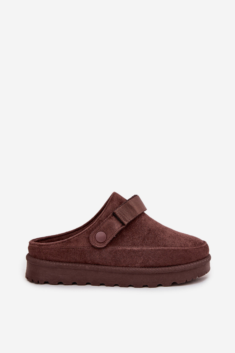 Damen warme Hausschuhe mit Fell im Inneren und Plattform in schokoladiger Farbe Azida