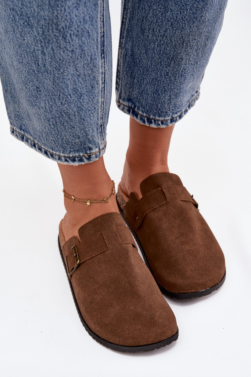 Hausschuhe Verstopfungen Feminin i mit einer Plattform mit Schnallen braune Farbe Selio