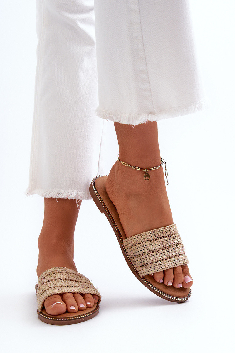 Damen Pantoletten mit Riemen und breiten Absätzen in Sandfarbe Radians