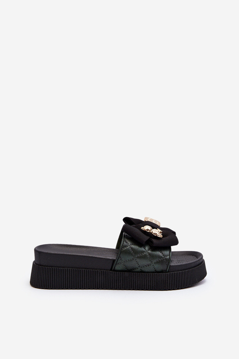 Schwarze Damen-Pantoletten mit Schleifen und Teddybären "Katterina"