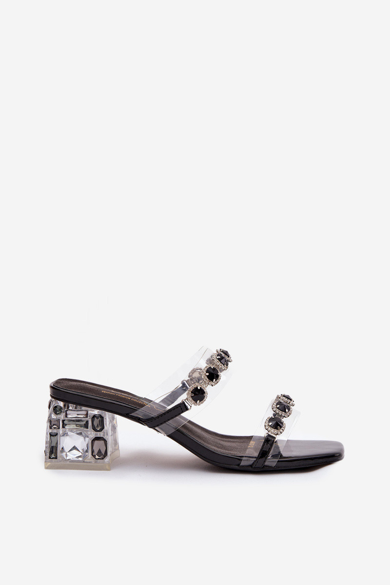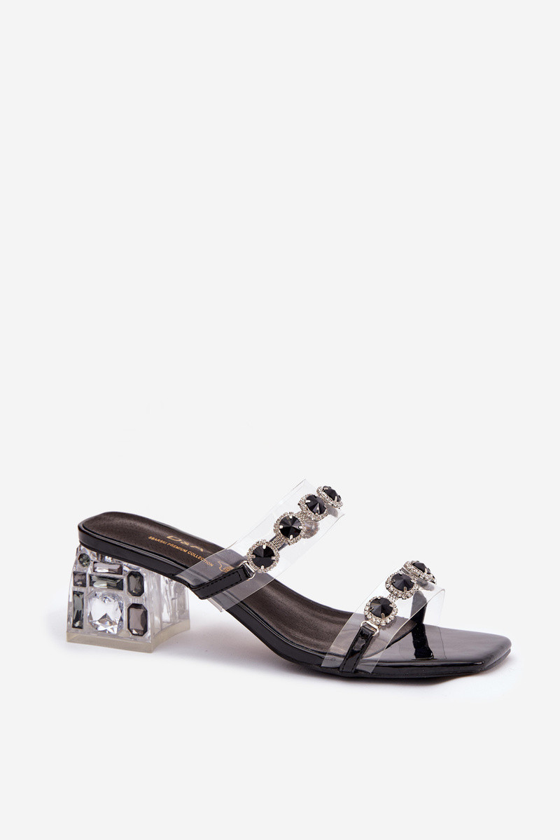 Damenpantoletten mit glänzenden Steinen D&A MR1037-02, schwarz