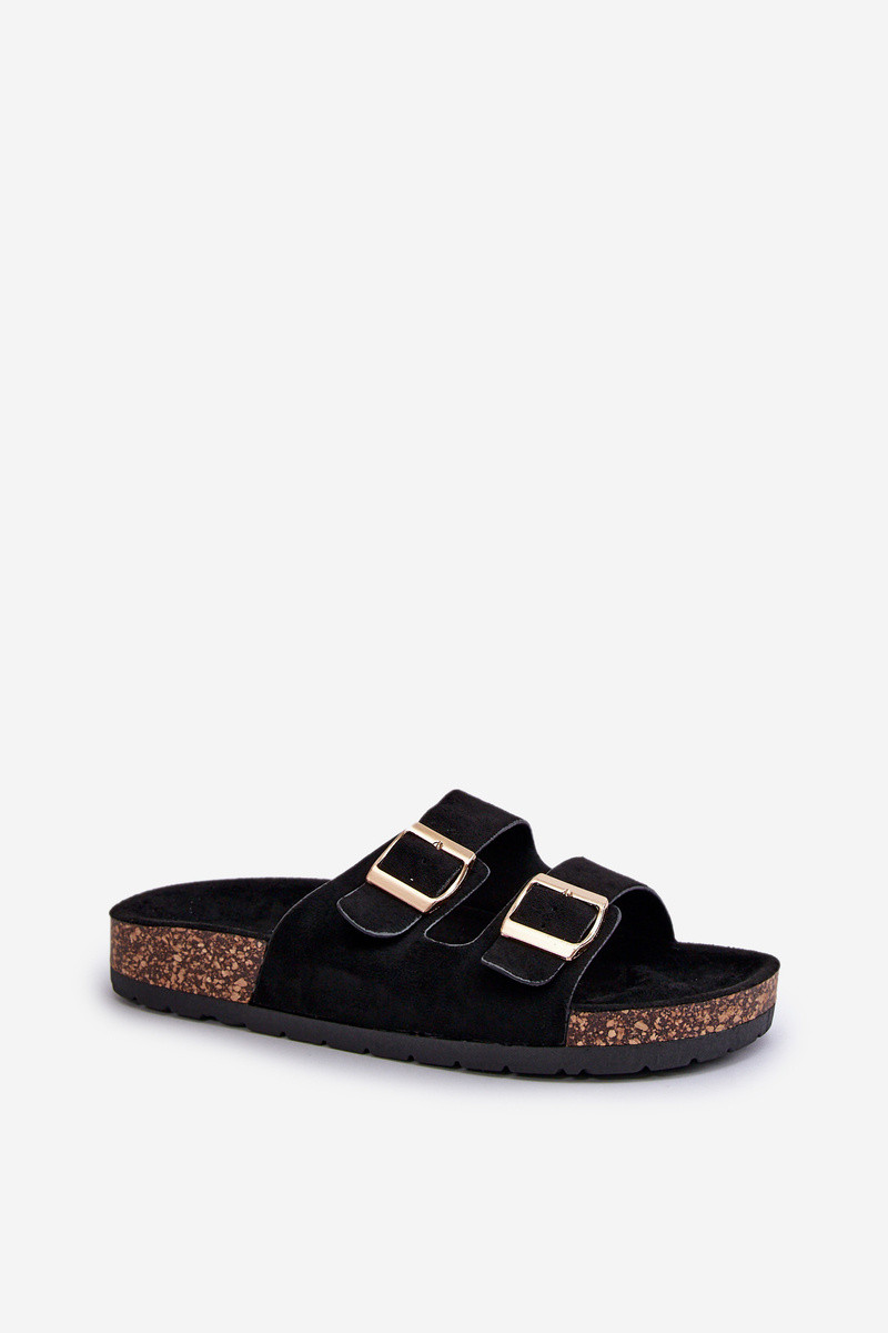 Damenhausschuhe Auf einer Korksohle schZuarze Farbe Cortina