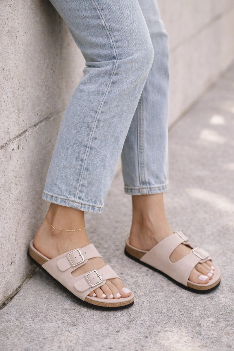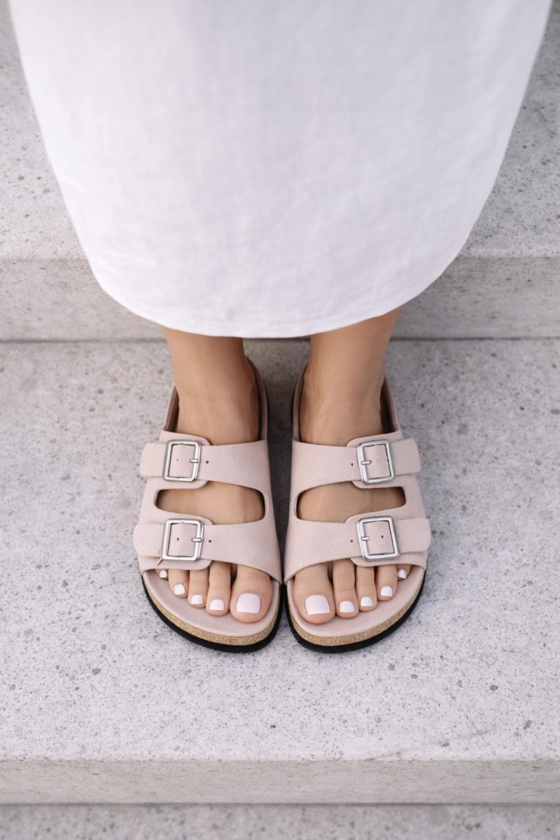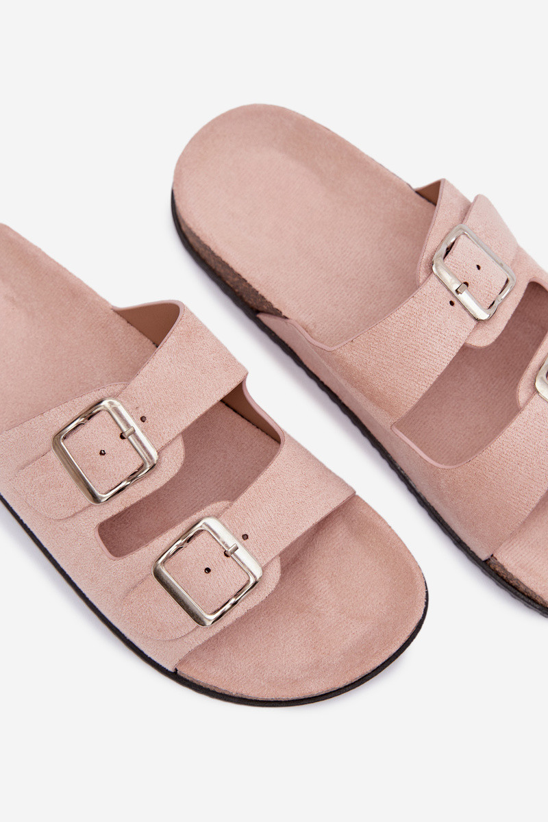 Damen hellrosa Pantoletten mit Schnallen „Oliena"