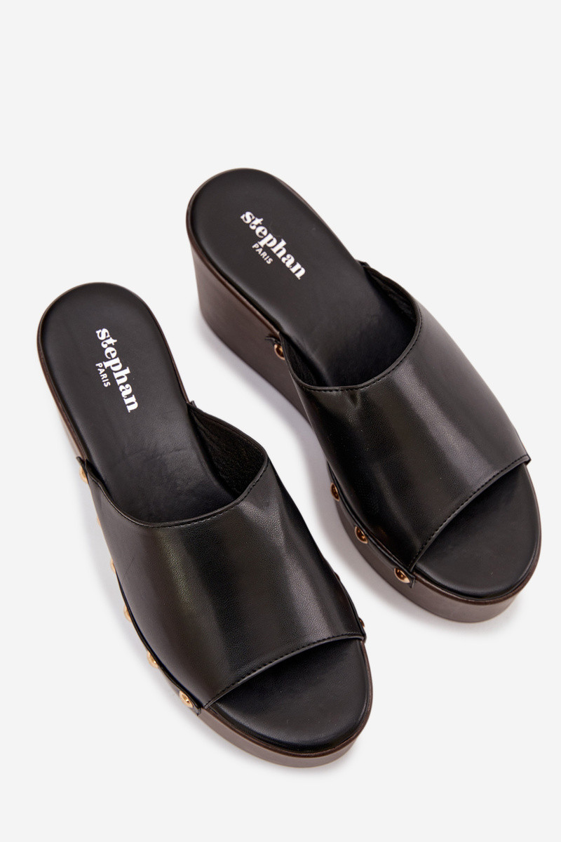 Damenflip-Flops mit Plattform und Nieten in Schwarz Taireline