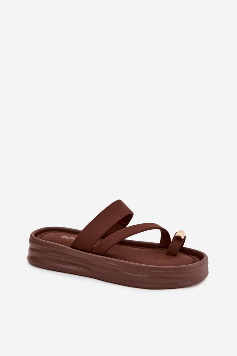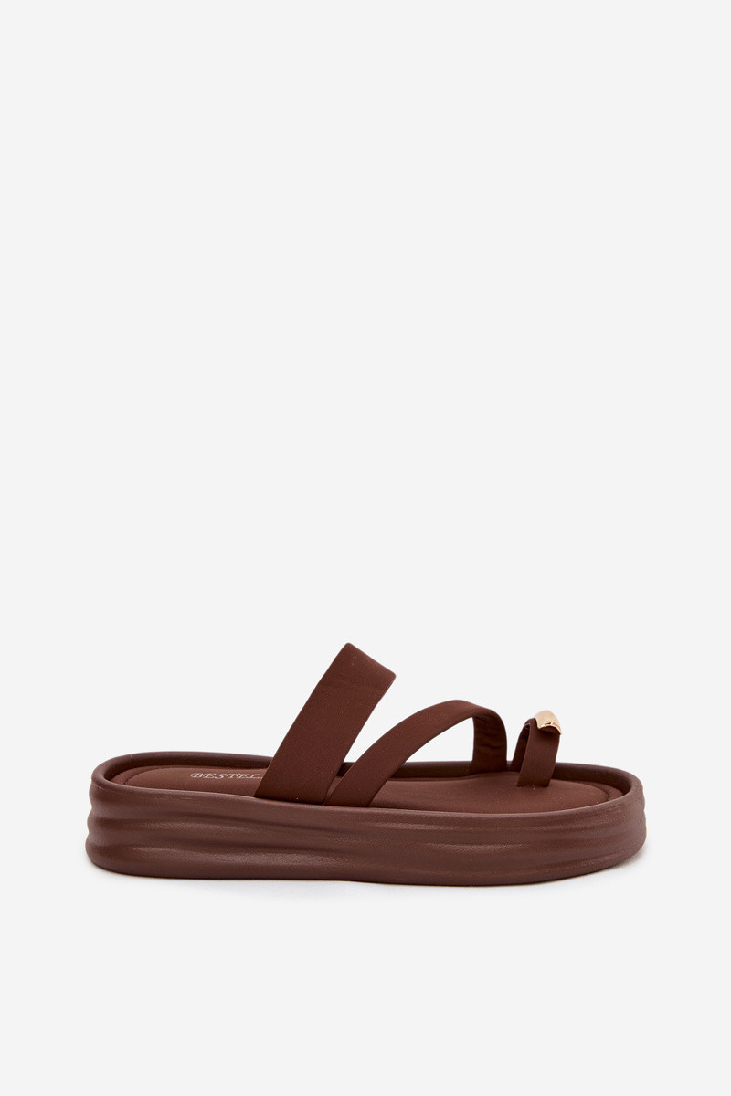 Damen schokoladenfarbene Pantoletten mit Riemchen und goldfarbenen Details Farielle