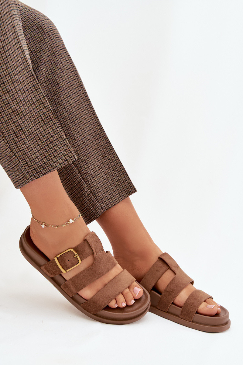 Damenhausschuhe mit Streifen I Złotą mit Schnallen braune Farbe Ulirissa