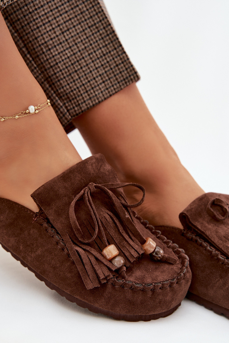 Damenhausschuhe Mule mit Fransen I Korallenfarbeikami CzekoladoZue Belissa